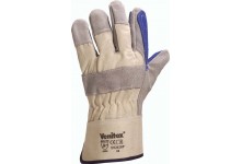 Перчатки комбинированные. Кожевенный спилок с хлопчатобумажной подкладкой. Дополнительные накладки для усиленной защиты на ладонной стороне, большом и указательных пальцах. Тыльная сторона перчатки из хлопчатобумажной ткани с дополнительной накладкой из кожи для усиленной защиты. Крага из плотной хлопчатобумажной ткани.