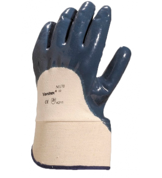 Нитрил на хлопчатобумажной трикотажной основе джерси". Защитная крага 6-см из плотной х/б ткани. Отсутствие покрытия на тыльной стороне обеспечивает доступ воздуха."