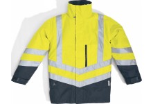 Куртка. Парка утепленная влагозащитная. Швы: влагонепроницаемые. Капюшон: втачной. Застежка-молния с ветрозащитной планкой на липучках. Сигнальные св-ва: класс 2-Цвет серебритый — светоотражающие полосы по линии талии, на рукавах, вертикальные полосы на передней части и спинке. 4 кармана.